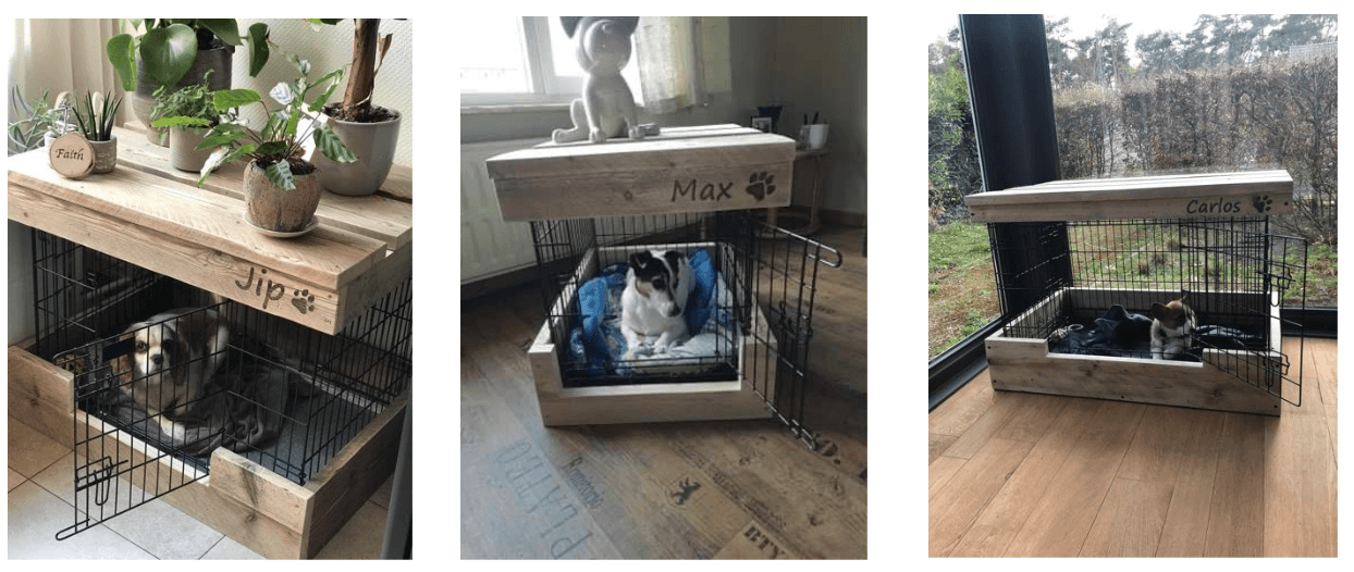 Zo wordt die gewone draadbench een prachtig meubelstuk in je woonkamer. Onze vintage bench is niet alleen stijlvol en betaalbaar, maar ook praktisch (makkelijk schoon te maken), veilig (je hond kan niet aan het hout), flexibel (de draadbench is apart mee te nemen) én een unieke upgrade voor elke hondeneigenaar.