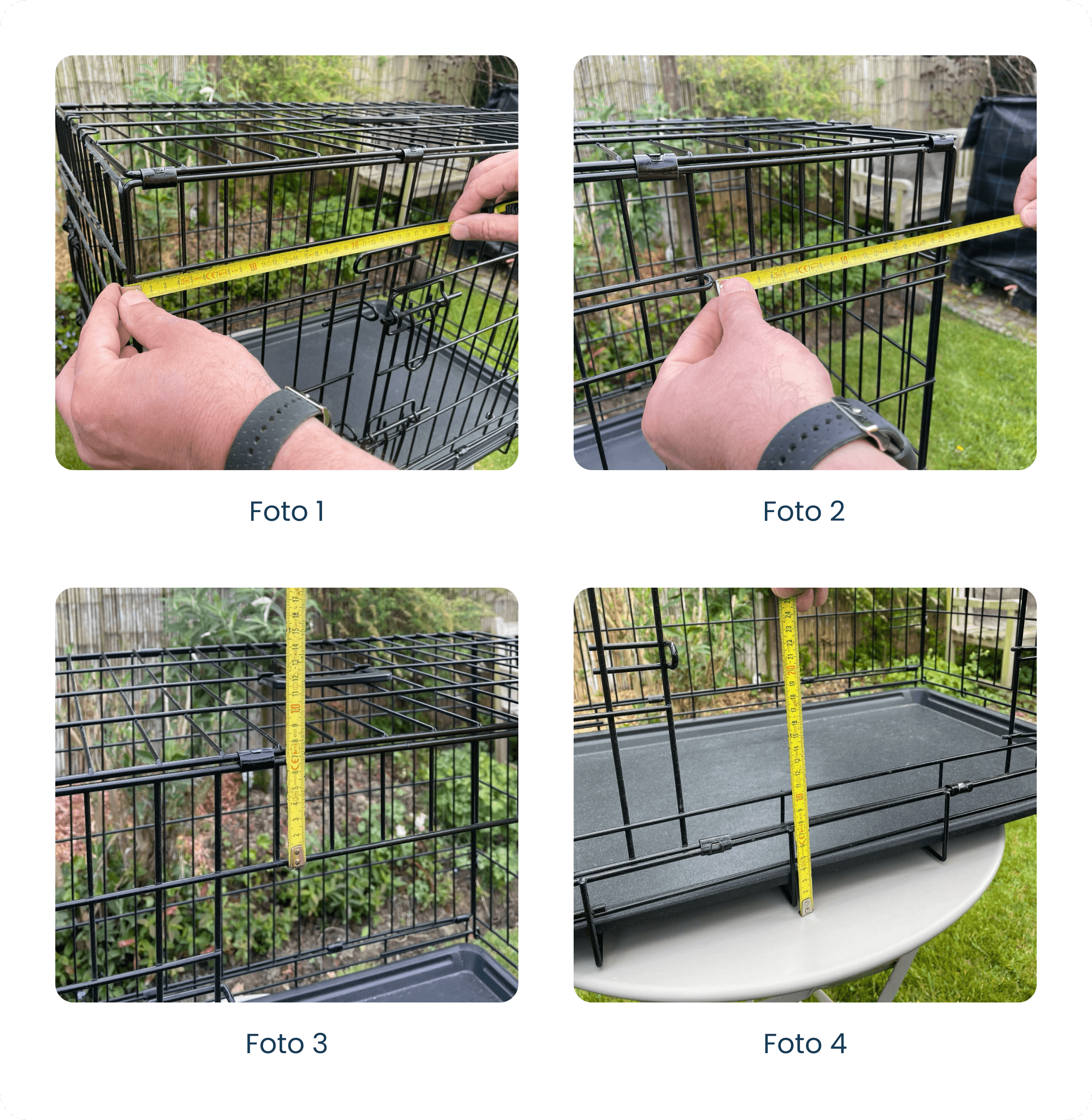 Voor de modellen Modern en Vintage hebben we vier extra maten nodig. Voor de hondenmanden look aan de onderkant van dit model hebben we de positie van het deurtje nodig.