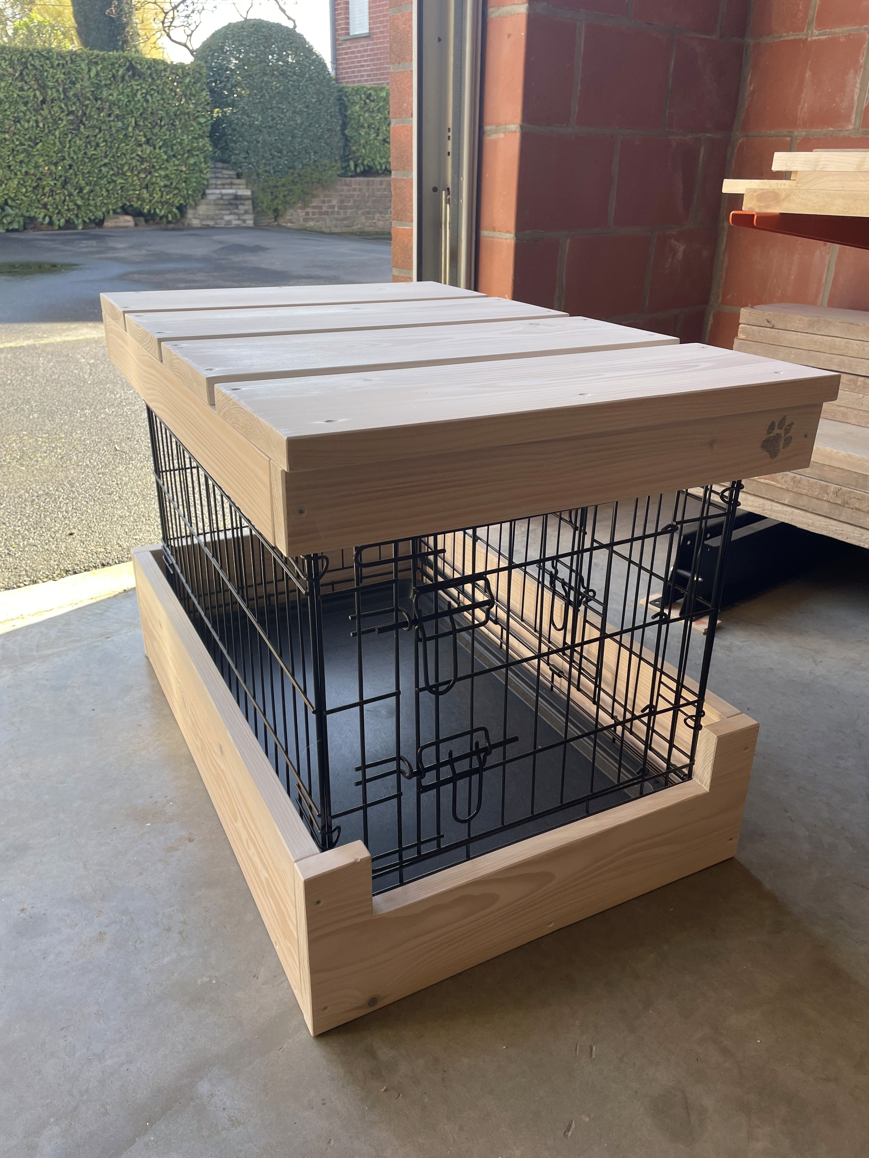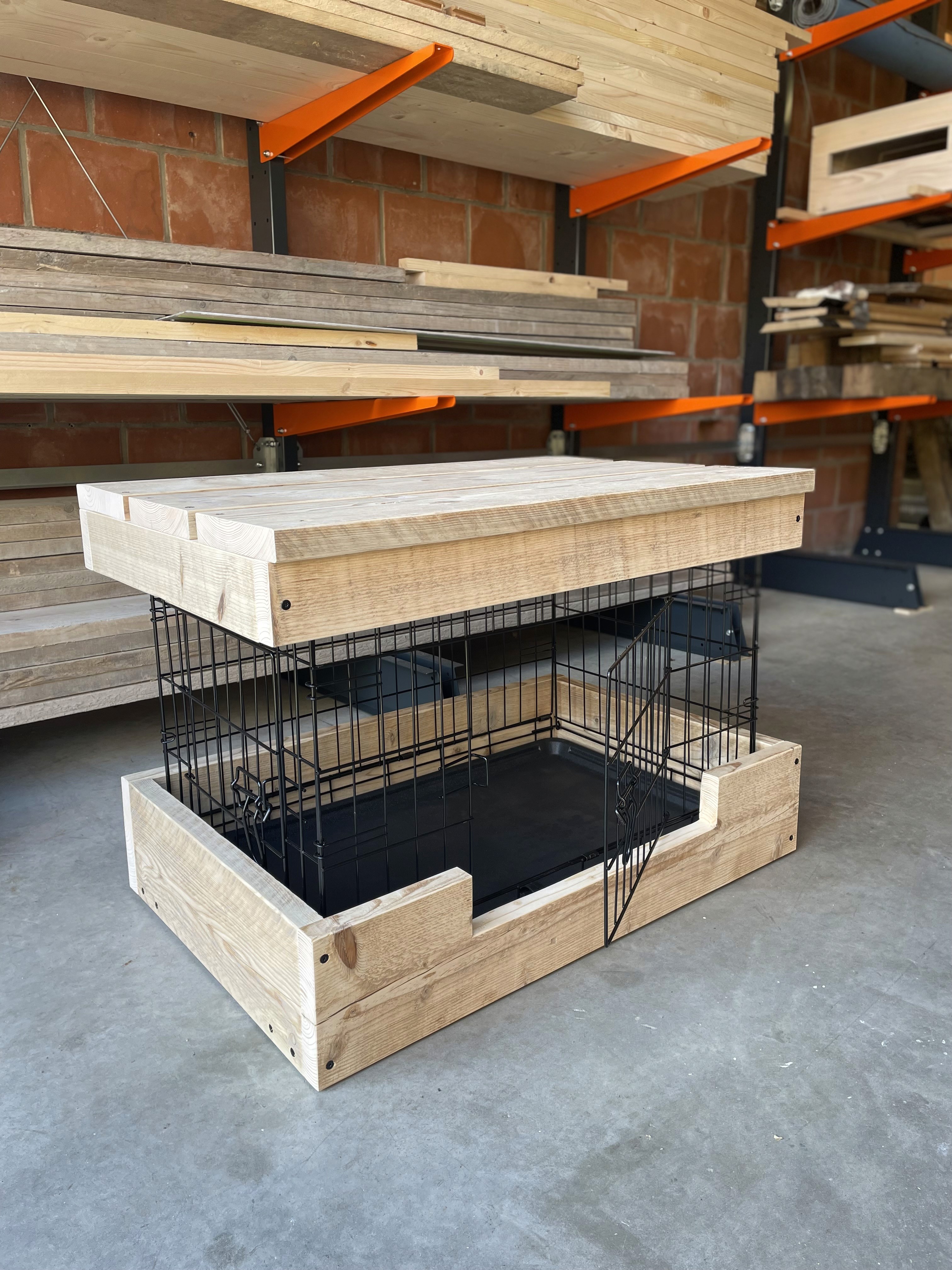 Op voorraad, een Moderne Medium WhiteWash inclusief de draadbench met de opening op de korte kant.